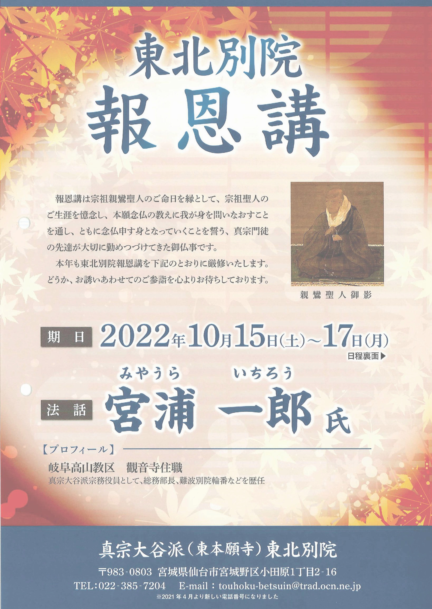 10月15日(土)~17日(月)に勤修される東北別院報恩講の当日の法要オンライン配信は終了いたしました。