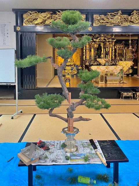 日常のお荘厳より大きな形で用意するため、何人もの方々に力をお借りして準備されていきます。